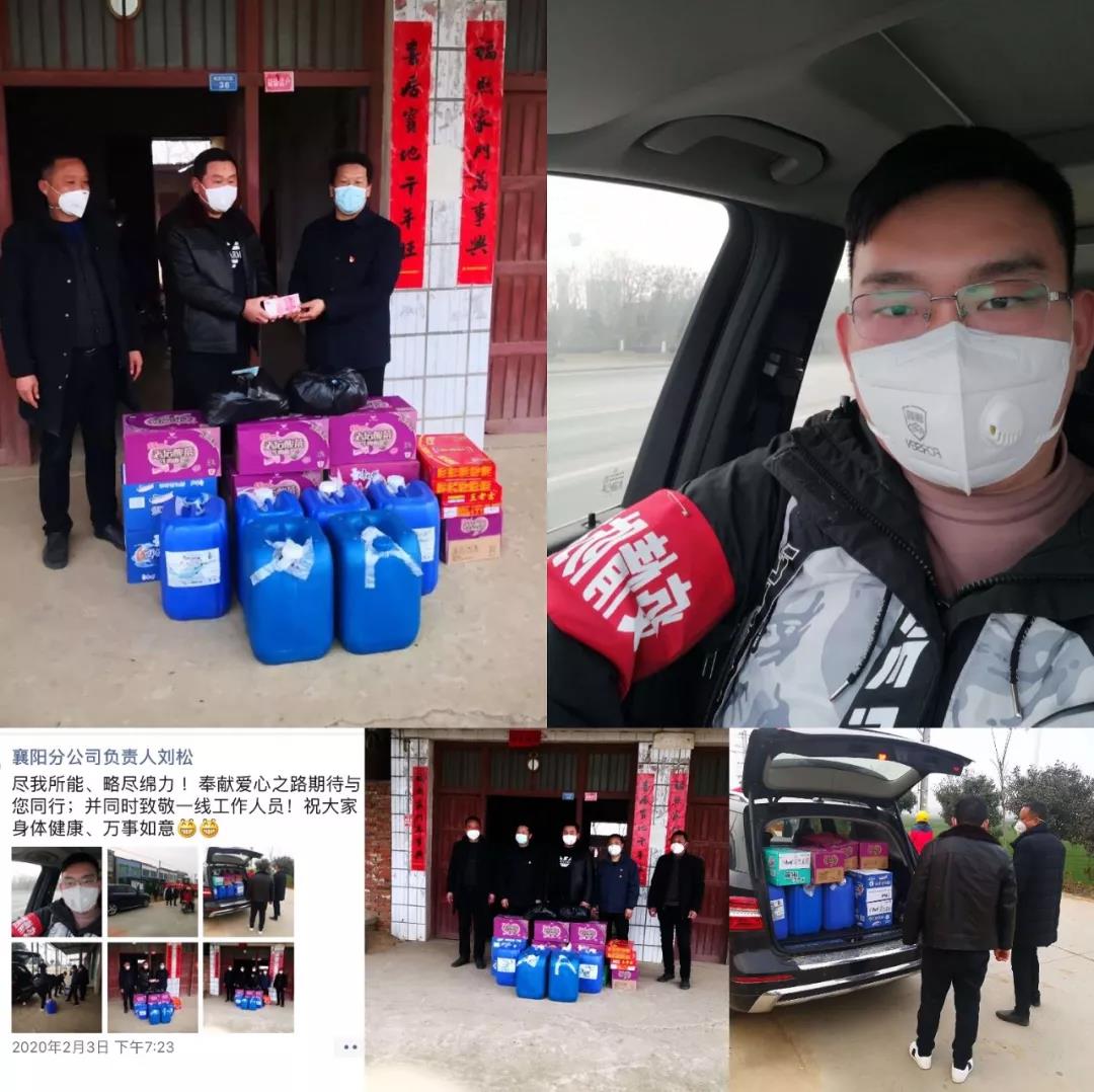 向襄陽市襄州區(qū)朱集鎮(zhèn)政府及襄陽市樊城區(qū)洪溝社區(qū)居委會,共捐贈消毒原液400斤,桶裝方便面10箱,N95醫(yī)用口罩300個,醫(yī)用手套200副,現(xiàn)金10000元;