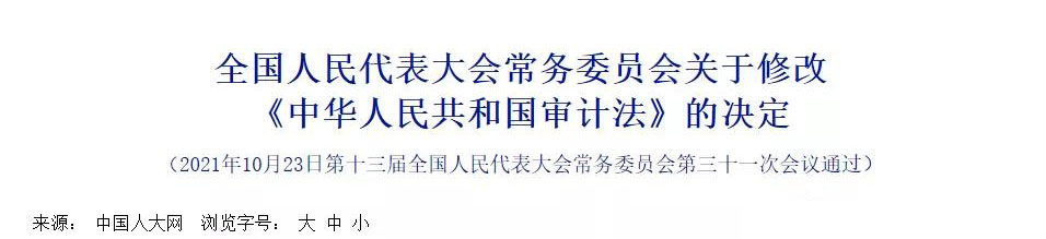 第十三屆全國(guó)人民代表大會(huì)常務(wù)委員會(huì)第三十一次會(huì)議決定對(duì)《中華人民共和國(guó)審計(jì)法》作如下修改: