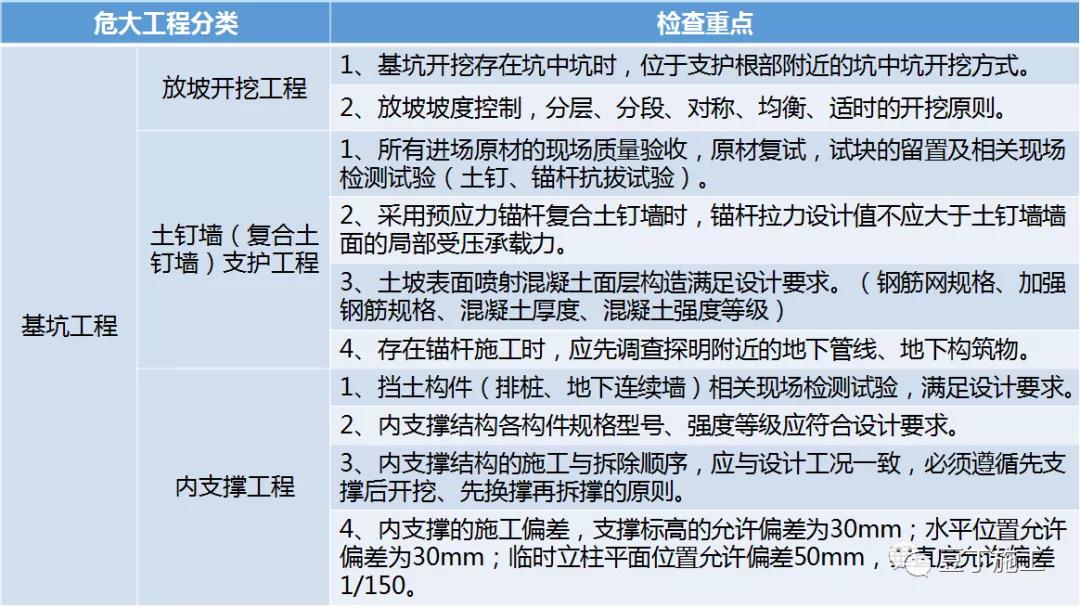 5.檢查要求:人工挖孔樁工程主要材料進場質(zhì)量檢查、抽檢,過程中對照專項施工方案有關(guān)檢查內(nèi)容等。