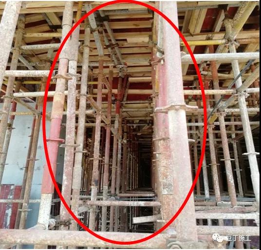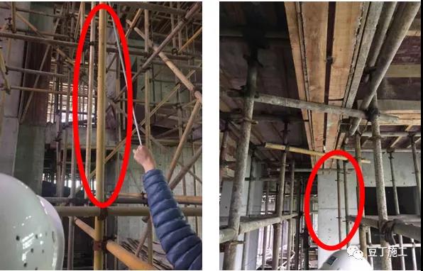 施工現(xiàn)場板底主龍骨為單鋼管。