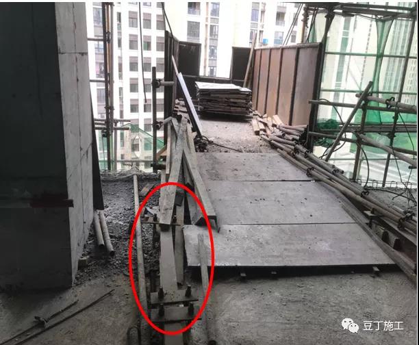 卸料平臺鋼絲繩規(guī)格為18與方案20不符;方案中錨固長度為2.85米,現(xiàn)場錨固長度為1.8米;卸料平臺與陽臺交界處墊木方,導(dǎo)致陽臺受一部分力。