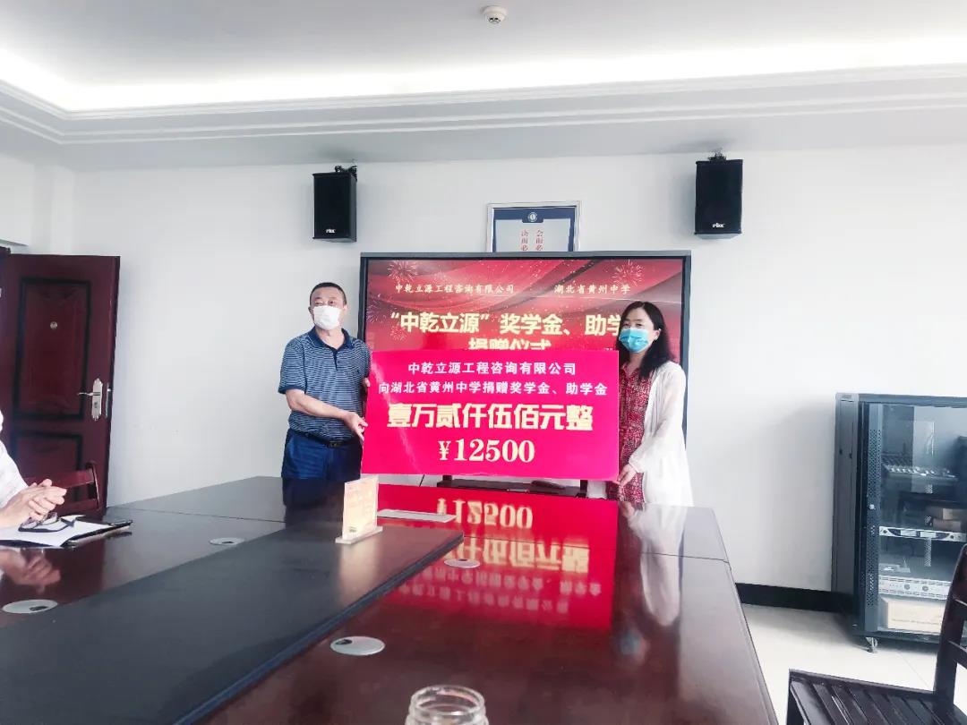 為更好的助力莘莘學(xué)子的學(xué)習(xí)熱情和拼搏向上的斗志,助力七月中高考,6月19日上午,“中乾立源”黃州中學(xué)第三屆中乾立源學(xué)生獎(jiǎng)學(xué)金、助學(xué)金捐贈(zèng)儀式在黃州中學(xué)會(huì)議室隆重舉行。中乾立源工程咨詢有限公司總經(jīng)理夏麗波女士、黨支部書記黃婧晗女士、和黃州中學(xué)相關(guān)領(lǐng)導(dǎo)參加此次活動(dòng)。